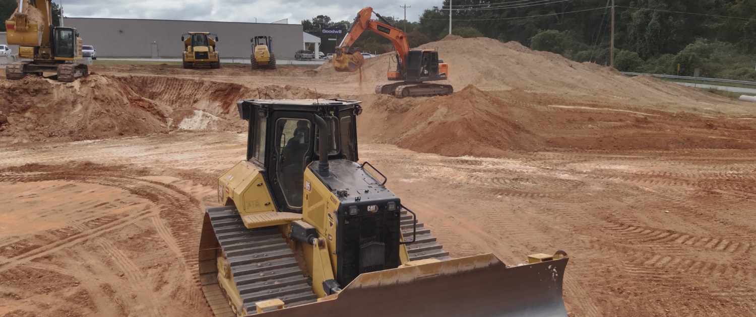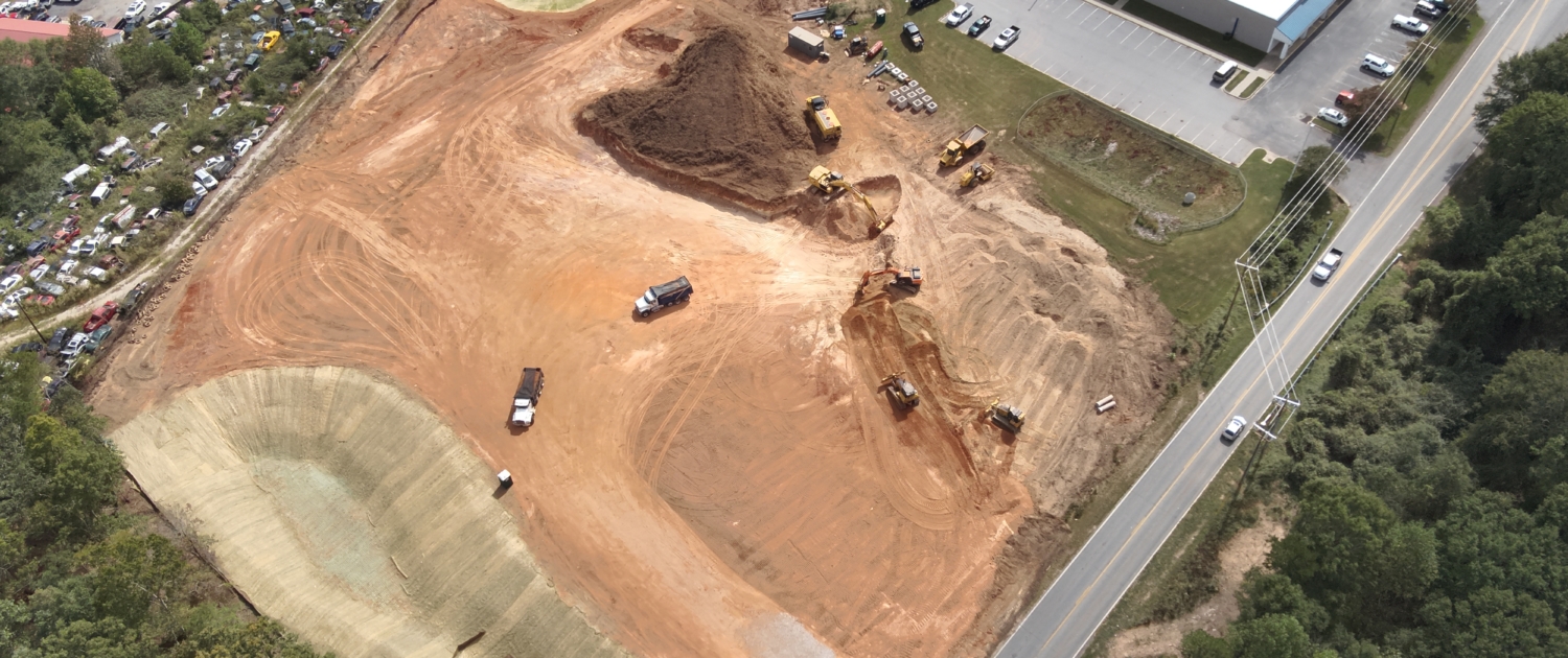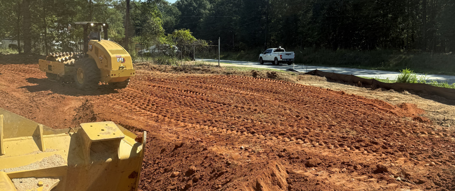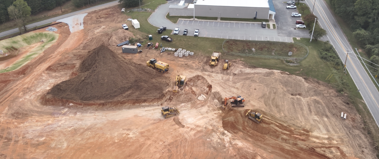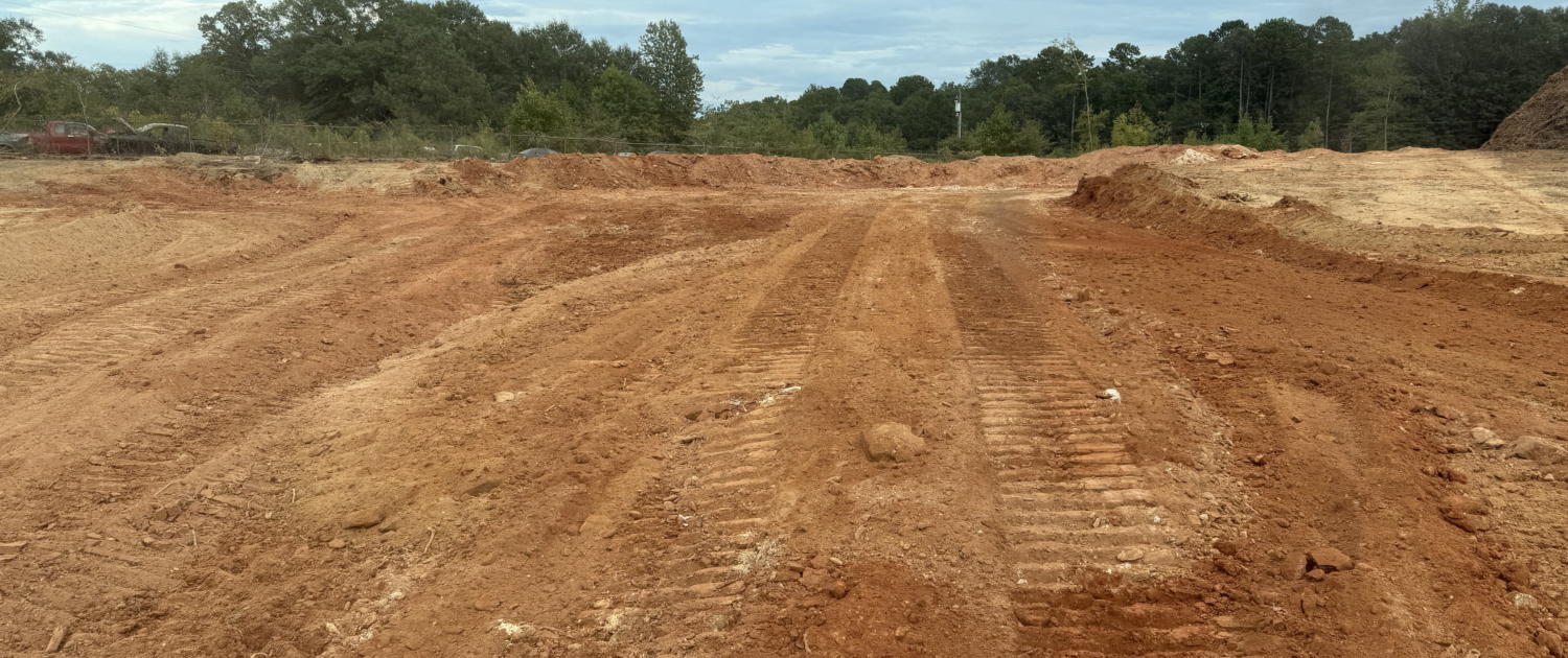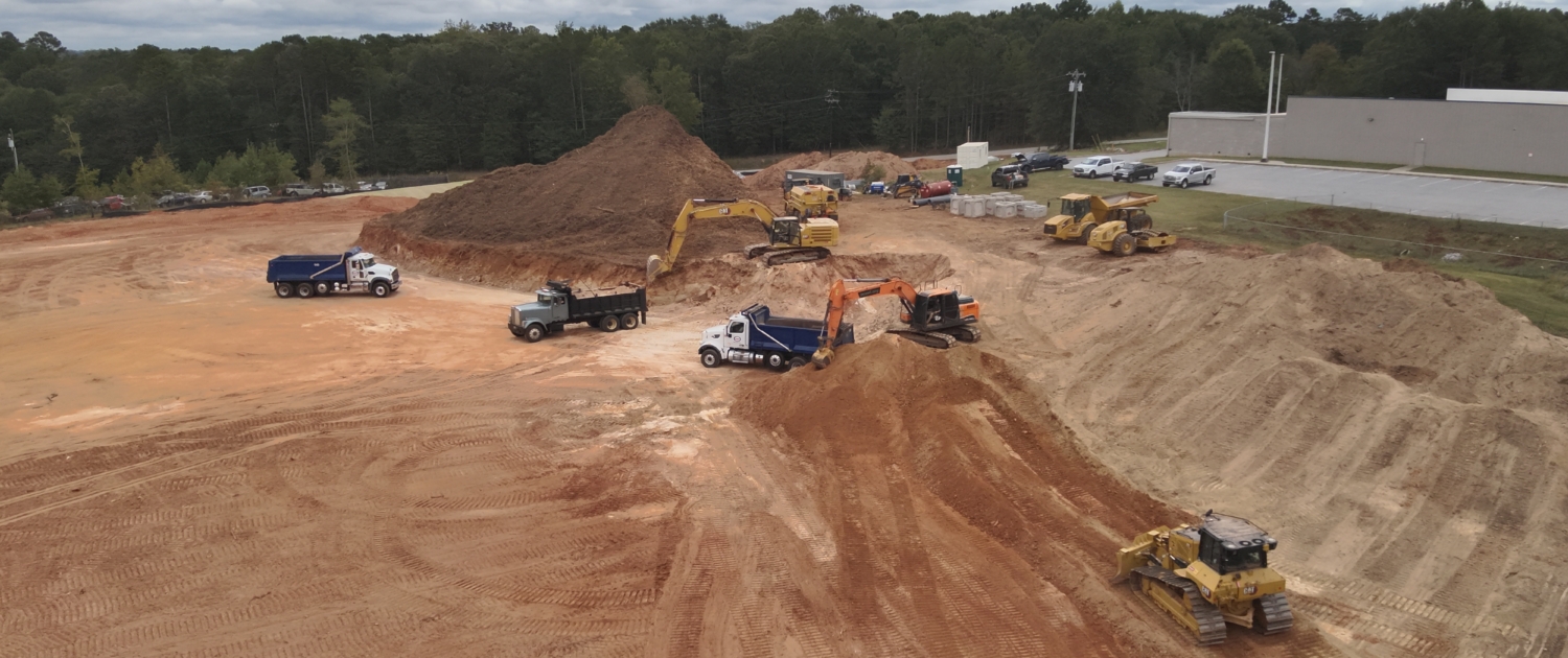 Rough grade, staking, stormwater, water and sewer.