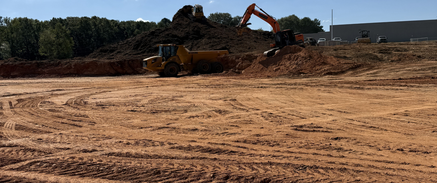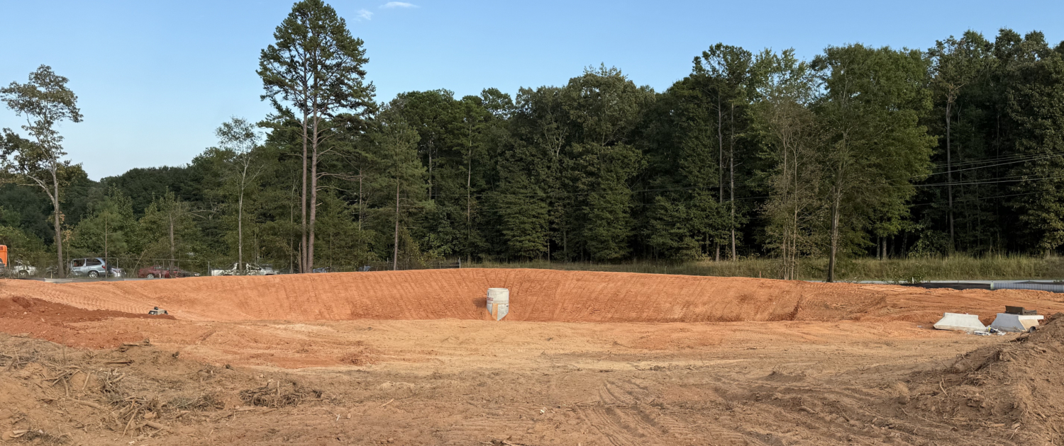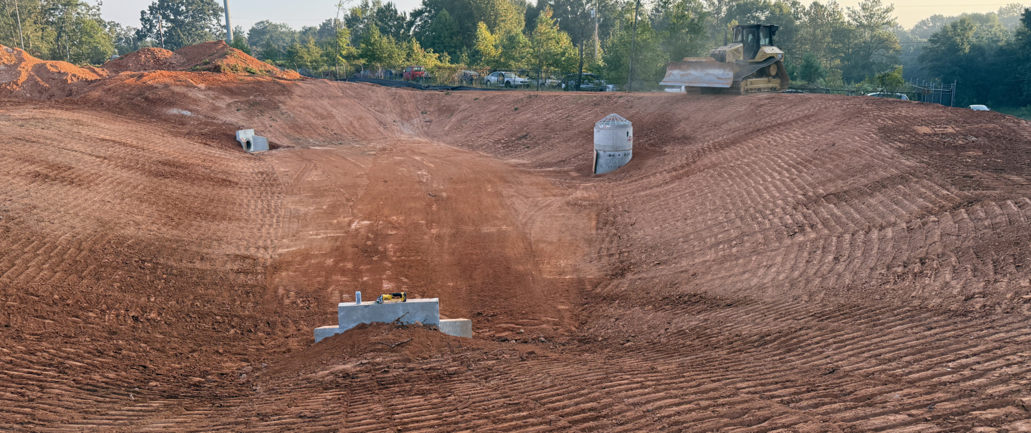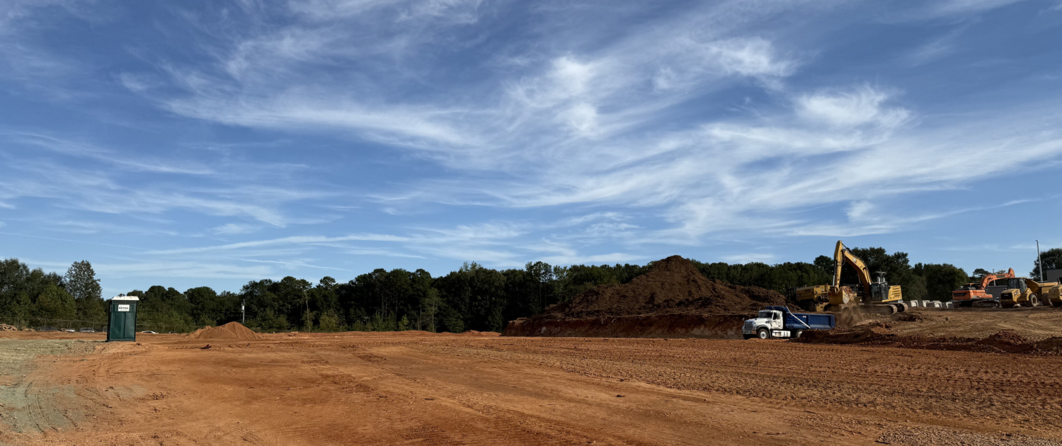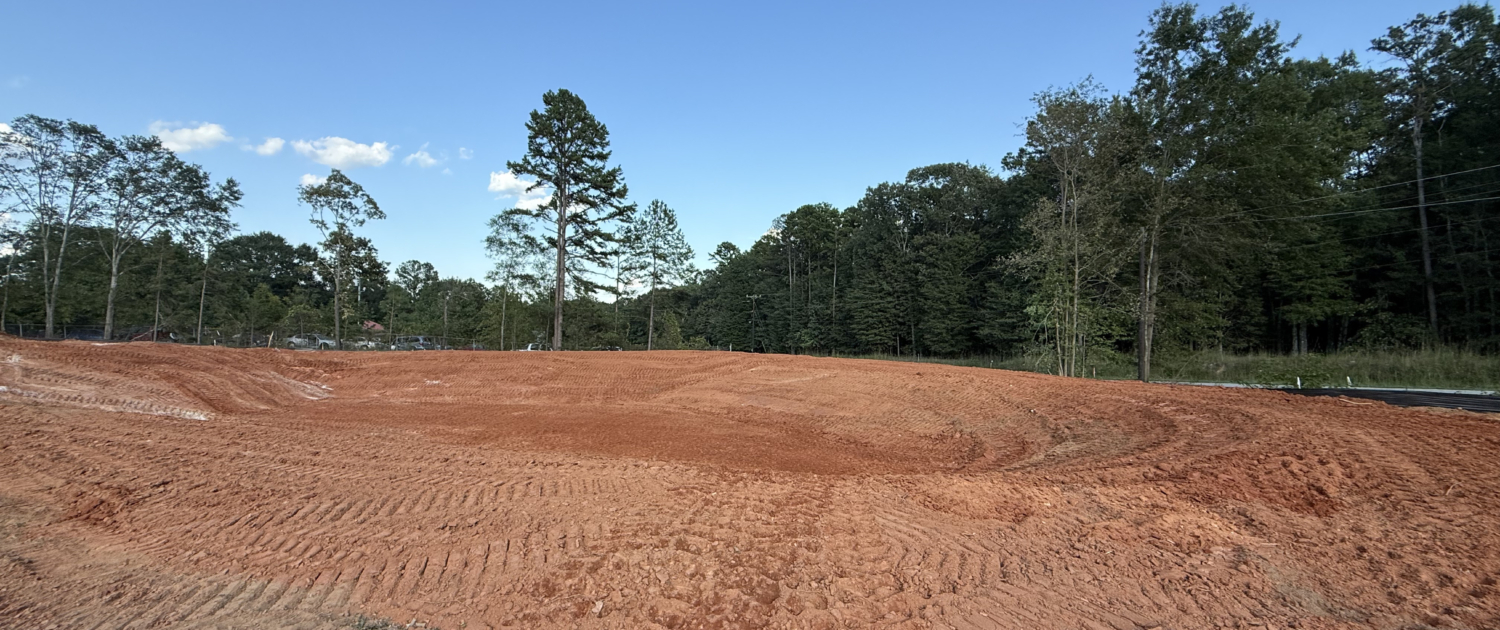 Rough grade, staking, stormwater, water and sewer.