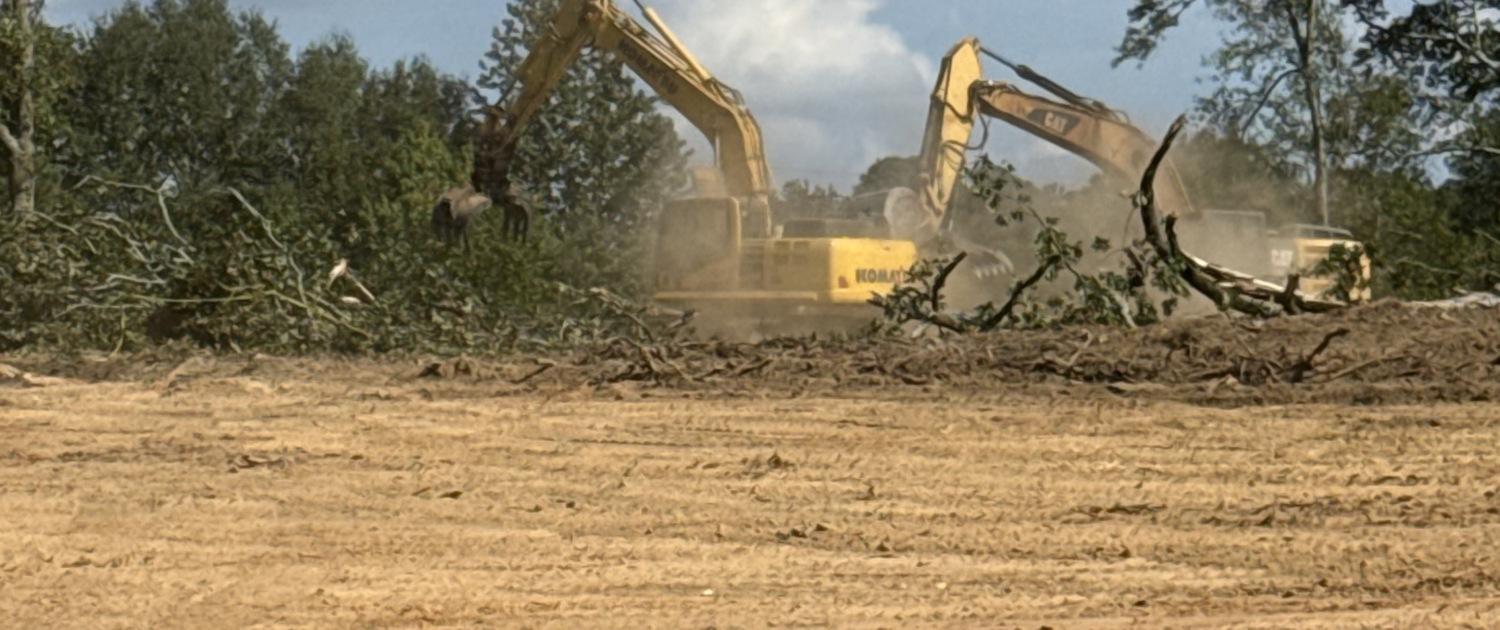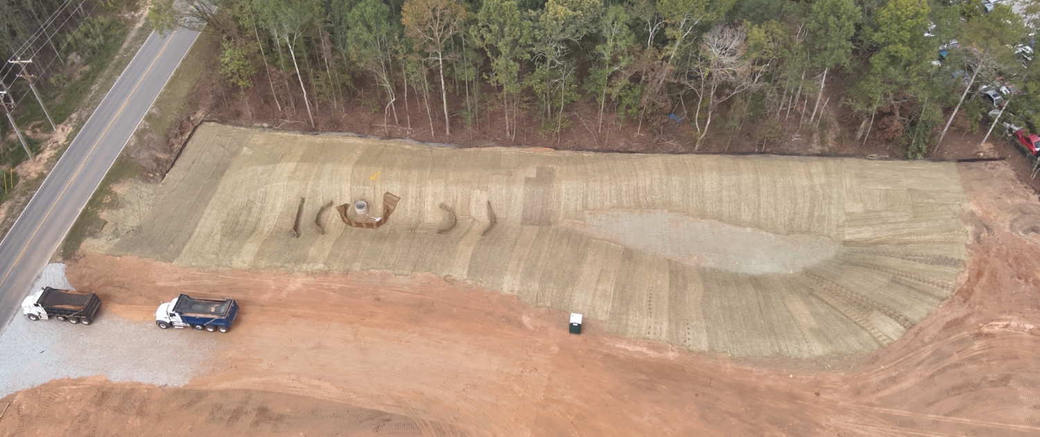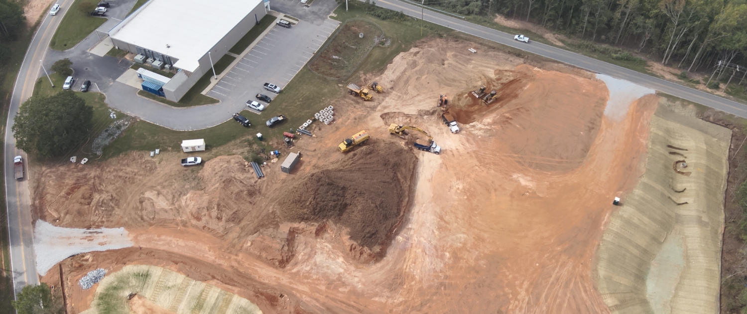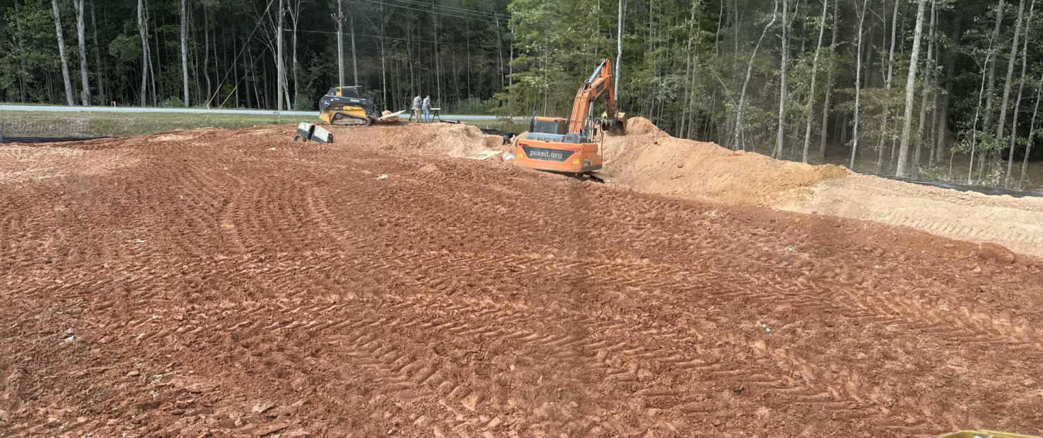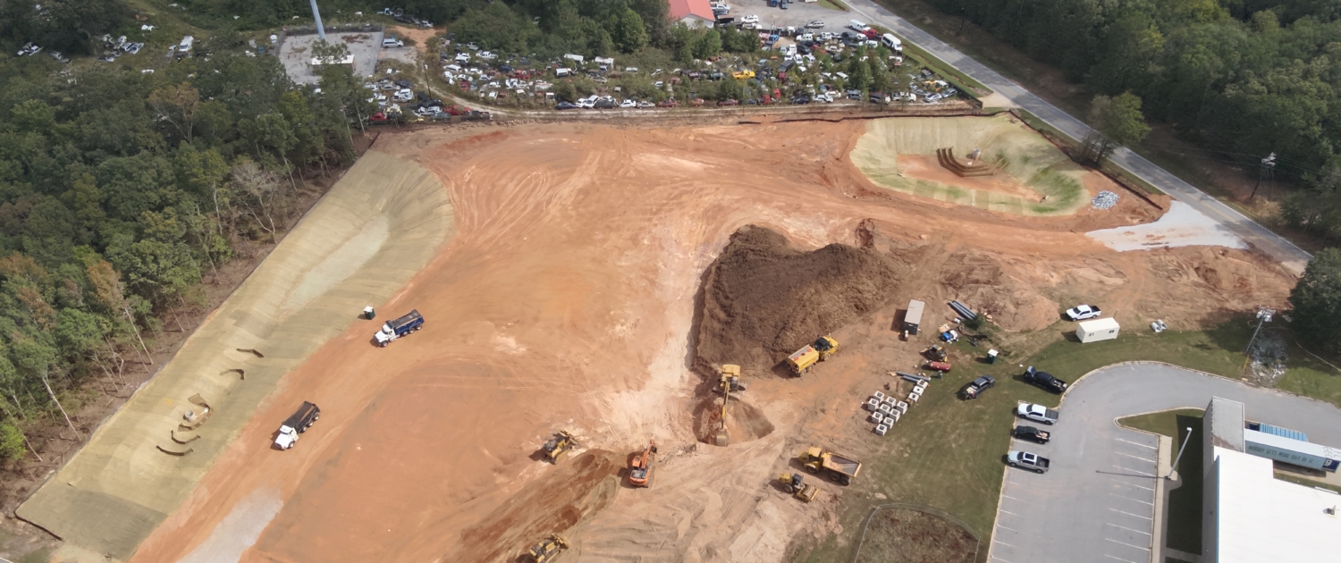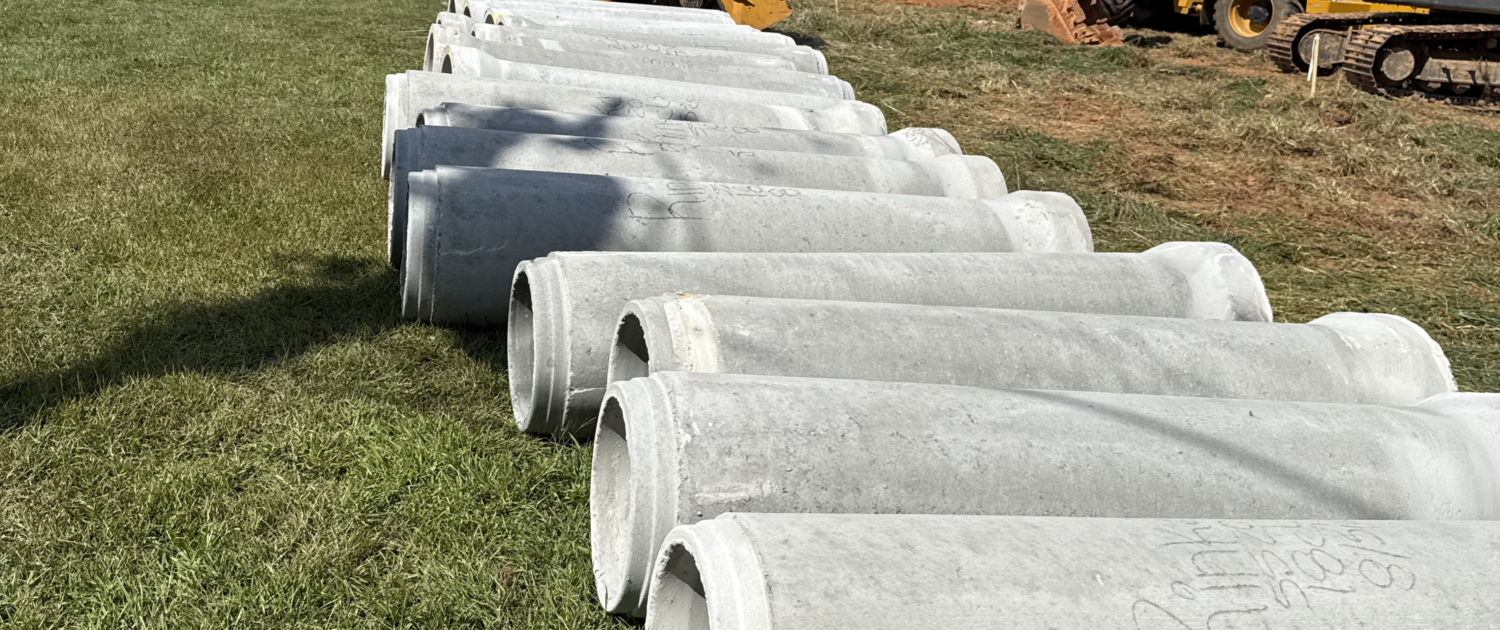 Rough grade, staking, stormwater, water and sewer.